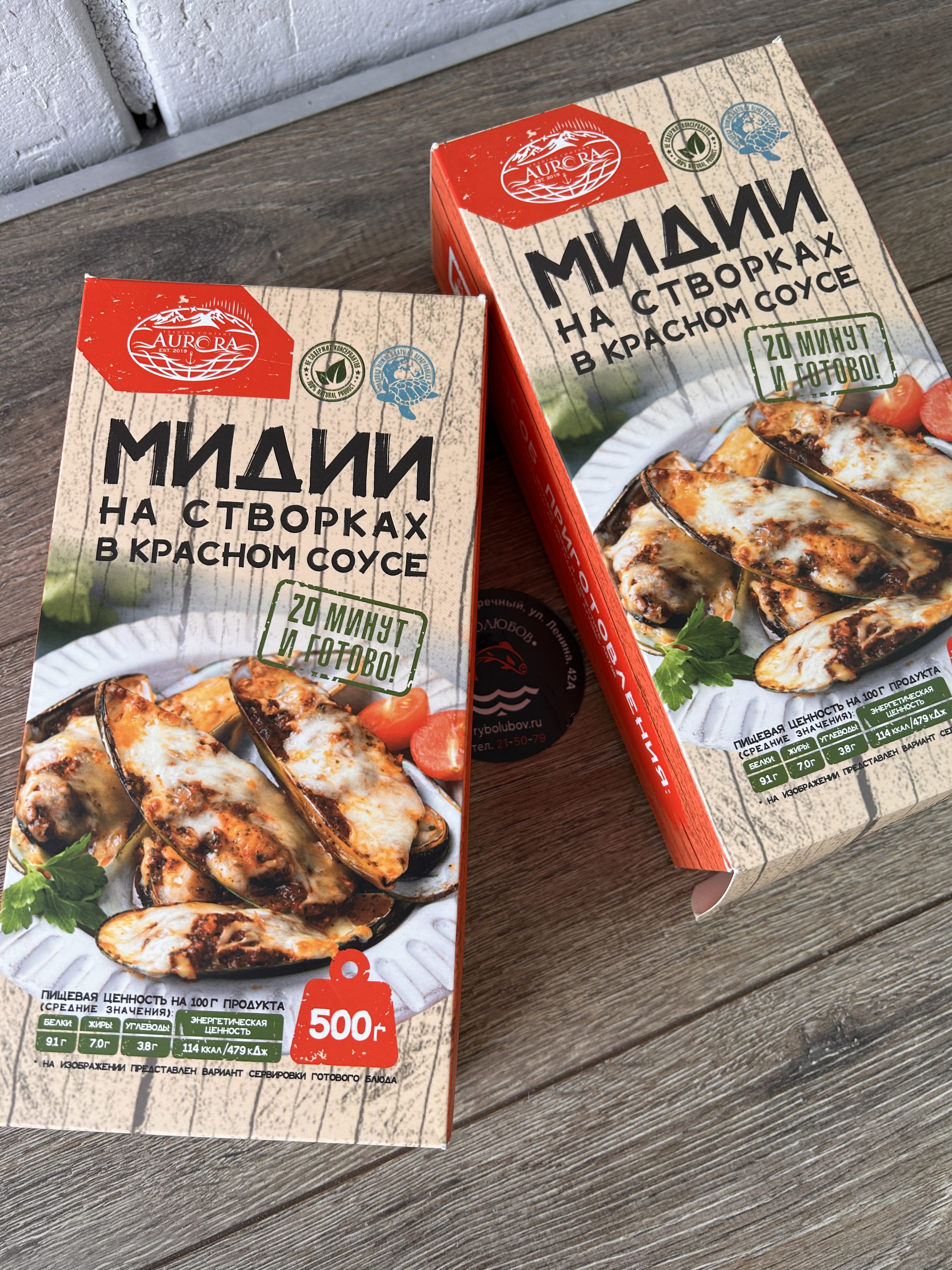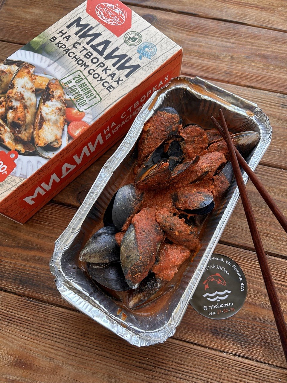 Мидии, сыр Пармезан с м.д.ж. в сухом веществе 40% (молоко нормализованное пастеризованное, соль пищевая, уплотнитель – хлорид кальция, бактериальная закваска мезофильных микроорганизмов, молокосвертывающий фермент микробного происхождения, краситель аннато), масло подсолнечное рафинированное дезодорированное, томатная паста с м. д. растворимых сухих веществ 25% (свежие томаты), сыр Моцарелла с м.д.ж. в сухом веществе 40% (молоко нормализованное пастеризованное, соль пищевая, уплотнитель – хлорид кальция, бактериальная закваска термофильных и мезофильных микроорганизмов, молокосвертывающий фермент микробного происхождения), чеснок сухой молотый, соль пищевая, базилик свежий.