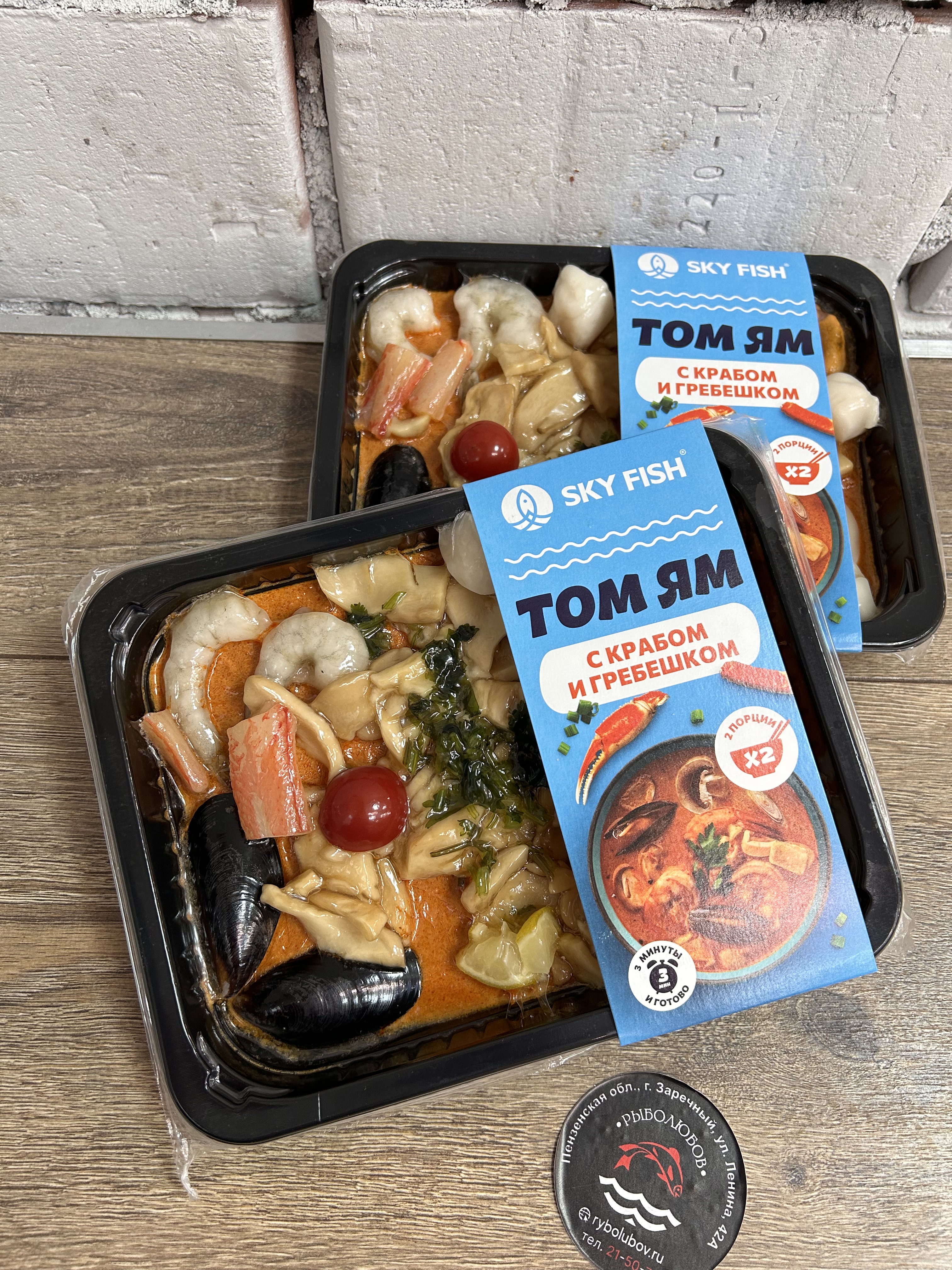 Состав: филе кальмара, креветка ваннамей, мясо мидий, мидии в раковине, филе гребешка, мясо краба, кокосовое молоко, шампиньоны свежие, помидоры черри, кинза свежая, паста том ям (лемонграсс, соевое масло, лук-шалот, сахар, паста тамаринда, сушёный красный перец чили, корень галангала, соль, мякоть чеснока, регулятор кислотности — лимонная кислота, рыбный соус, устричный соус, усилитель вкуса и аромата — 1-замещённый глутамат натрия, креветочный порошок, цедра кафир-лайма)